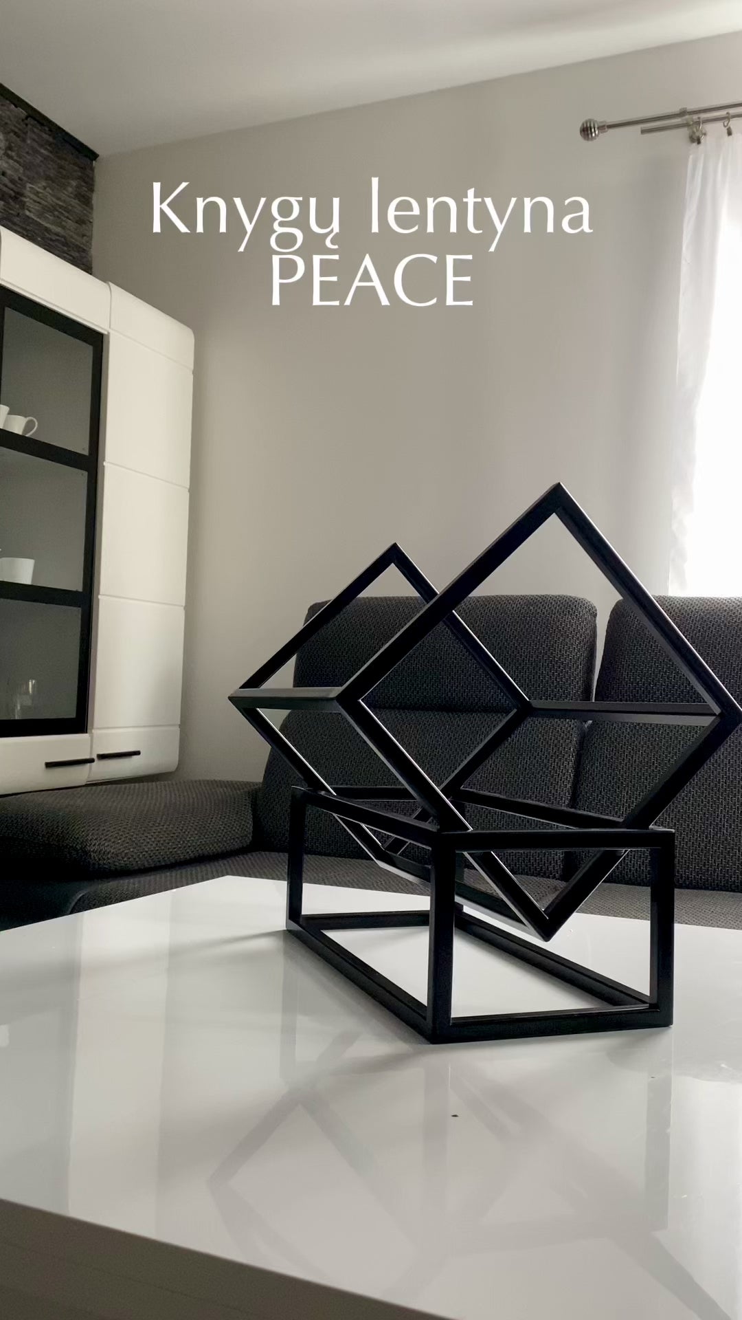 Knygų lentyna PEACE – minimalistinė metalinė lentyna, kuri suteikia interjerui subtilaus išskirtinumo ir struktūros.
