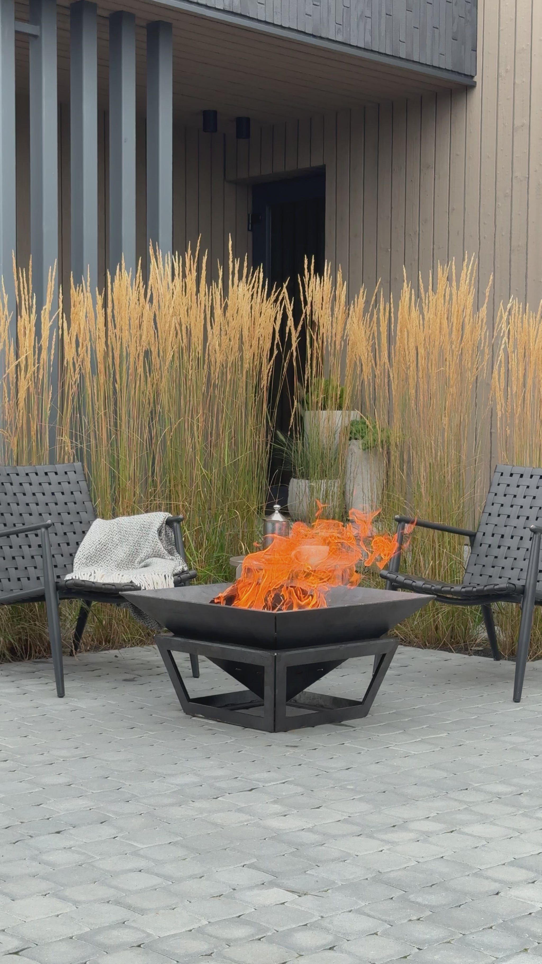 Modernus lauko ugniakuras HARMONY – šiuolaikiško dizaino ir jaukios šilumos balansas jūsų lauko erdvėje.
