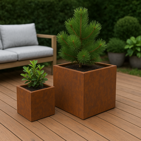 Vazonai yra pilnai sukomplektuoti, su drenažo skylėmis apačioje, todėl galite augalus sodinti tiesiai į vazonus. CUBE vazonai atspindi minimalistinį dizainą, o jų natūralus plieno paviršius su laiku įgaus rūdžių patiną, suteikiantį unikalų ir autentišką vaizdą.